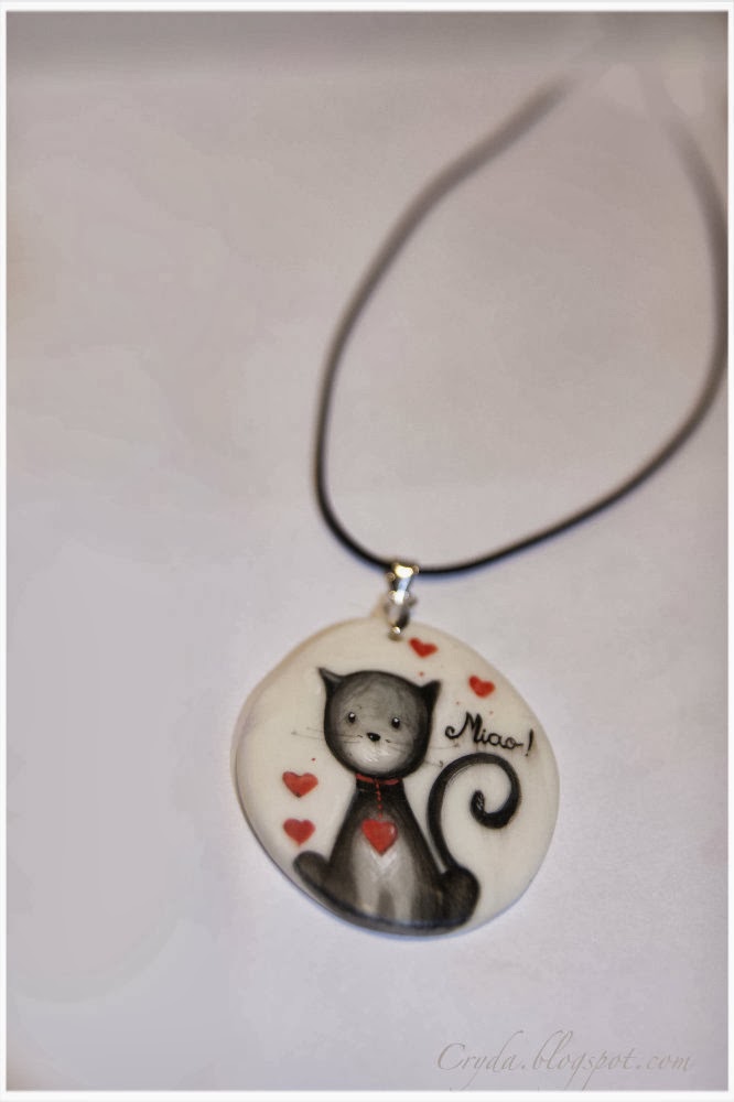 Ciondolo Miss Mary con steline ,dipinto a mano con acrilici .Porcelana freda. Il pezzo e unico e disponibile.
